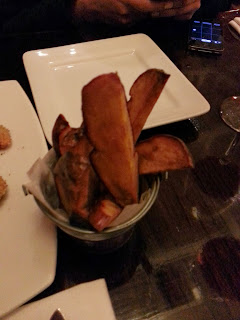 Me surpreendou com o 'couvert' oferecido pela casa: batatas ôrgânicas com 3 molhos! Eles são amigos dos celíacos!!! (por que nunca pensaram nisso antes aqui no Brasil??)